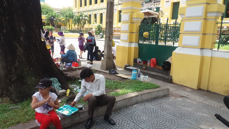 Tại đây còn có những hình ảnh xấu như những nhóm phụ nữ chèo kéo và tranh giành du khách, đặc biệt là bán đồ ăn thức uống không đúng nơi quy định. Thêm vào đó, những thực khách thiếu ý thức sau khi dùng đồ ăn thức uống thì vứt bừa bãi vỏ chai, lon nước, túi nylon… ngổn ngang dưới gốc cây và trên hẻm tường rào của Bưu điện.