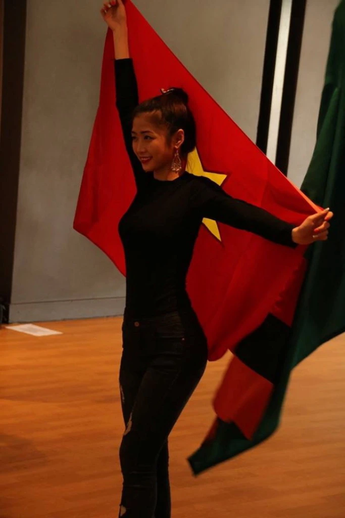 Chào khán giả với cờ Tổ quốc.