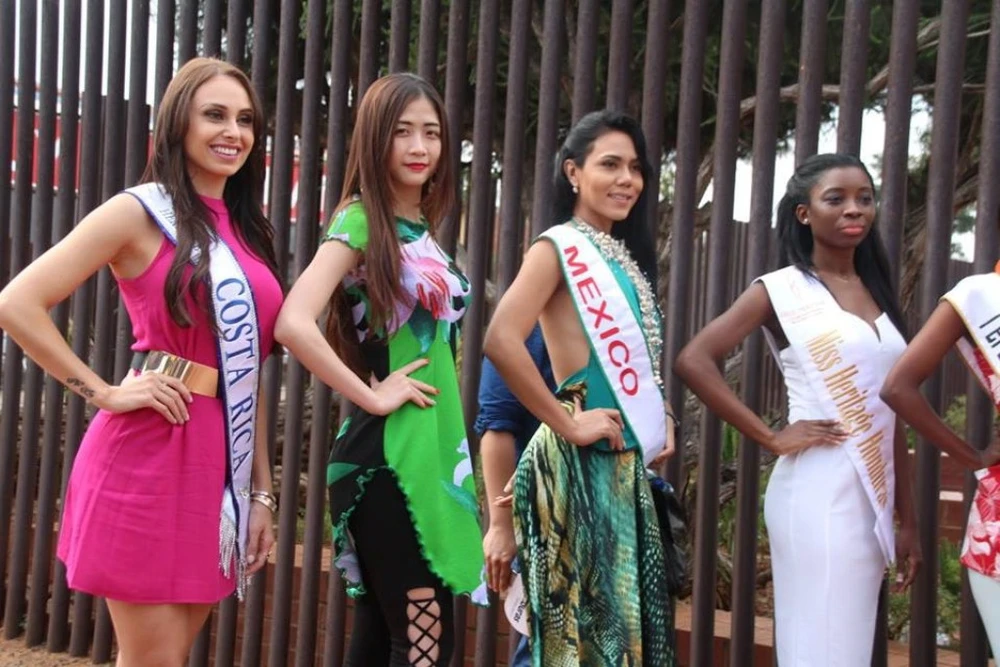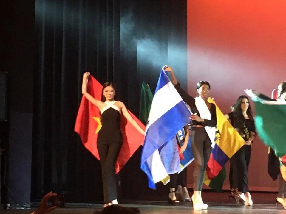 Các người đẹp giới thiệu quốc gia mình đại diện trên sân khấu.
