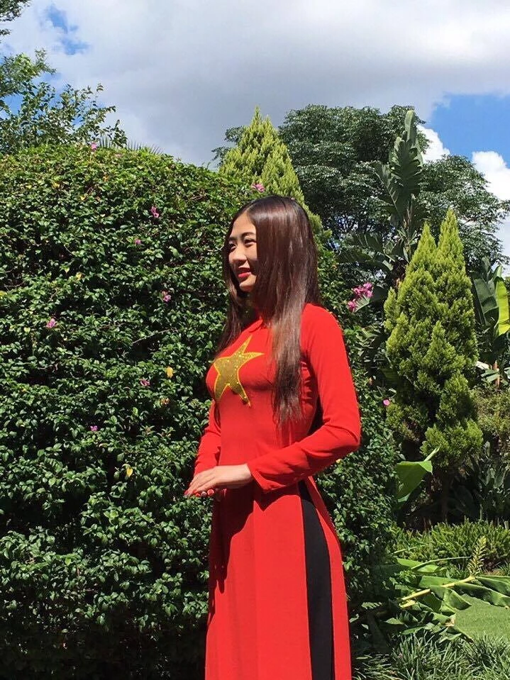 Thùy Dương khoe áo dài ở Nam Phi.