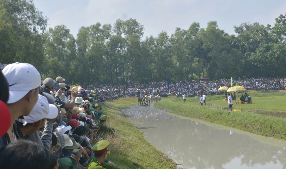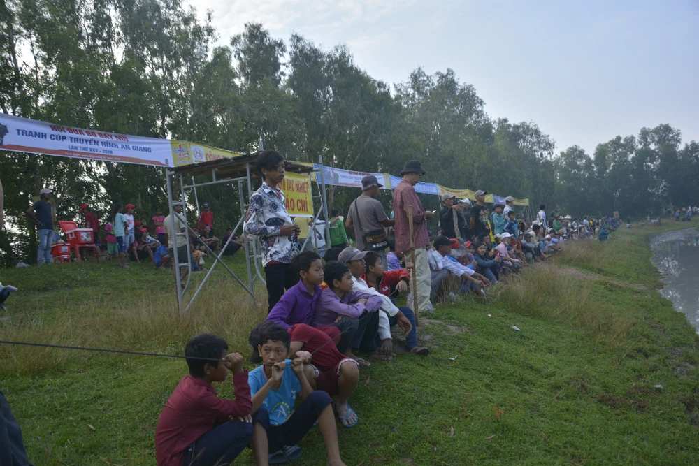 Mặc cái nóng oi bức, hàng chục người dân đã đến xem và cổ vũ cho các đôi bò.