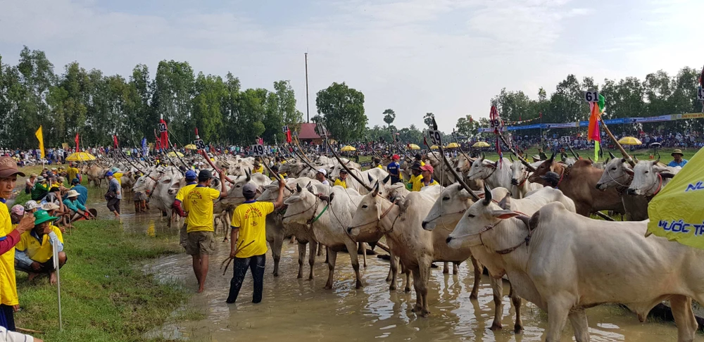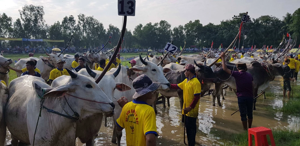 Ngay từ sáng sớm, 64 đôi bò đã tập trung và sẵn sàng cho trận tranh tài quyết liệt.