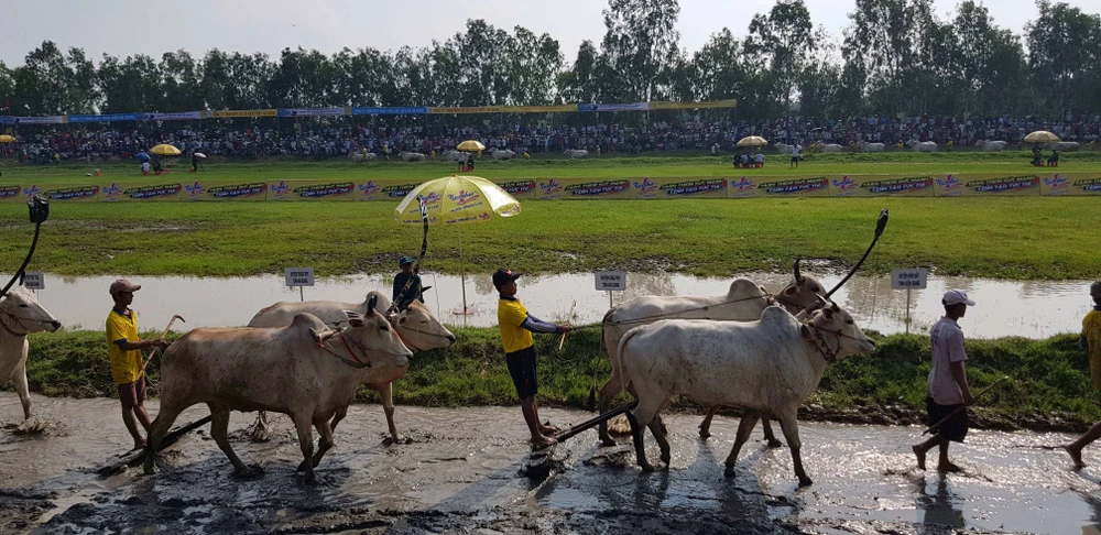 Các đôi bò bắt đầu vào trận đua.