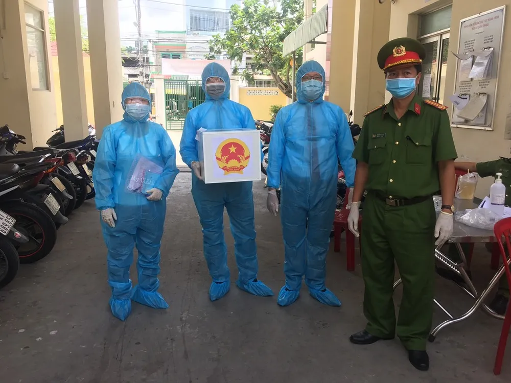 Tổ bầu cử số 041, phường 8, quận 6 mang Thùng phiếu phụ đến Trại giam Bà Lài. Ảnh: T.D
