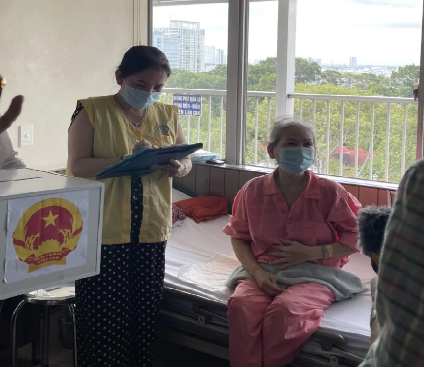 Để người bệnh đang điều trị tại BV vẫn thực hiện quyền công dân của mình, Uỷ ban bầu cử phường 12, quận 5 đã cùng phối hợp với BV Chợ Rẫy tổ chức cho hơn 1.000 cử tri, là bệnh nhân và thân nhân đủ điều kiện bầu cử đại biểu Quốc hội và HĐND các cấp bỏ phiếu ngay tại giường bệnh.