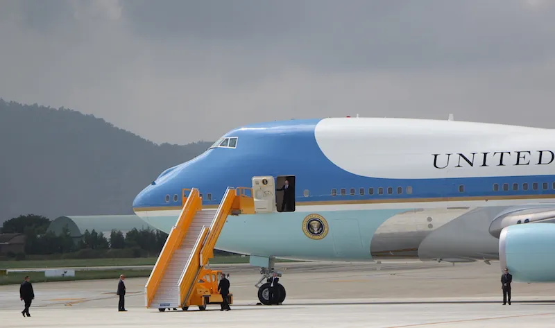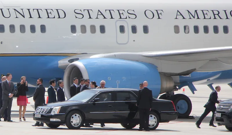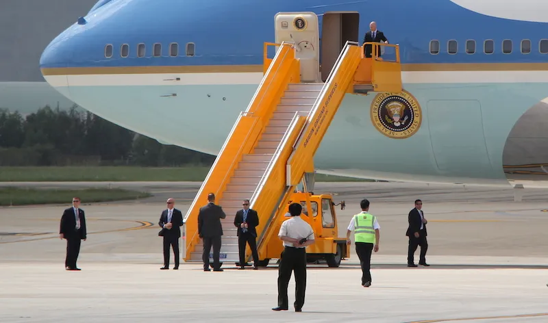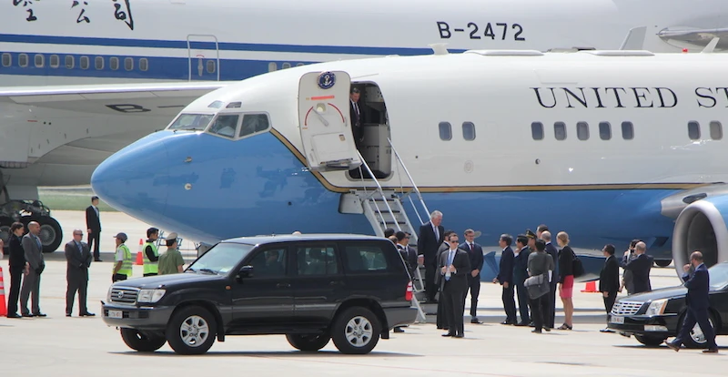 Khi Air Force One tới đậu thì lực lượng tiếp cận, bảo vệ máy bay cũng là các đặc vụ Mỹ. Ảnh: LÊ PHI