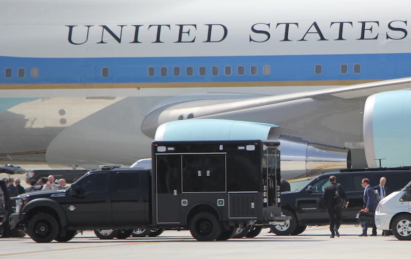 Mật vụ Mỹ dùng máy móc kiểm tra, đo đạc tỉ mỉ, kể cả trên đường băng khu vực chuyên cơ Air Force One đỗ. Ảnh: LÊ PHI