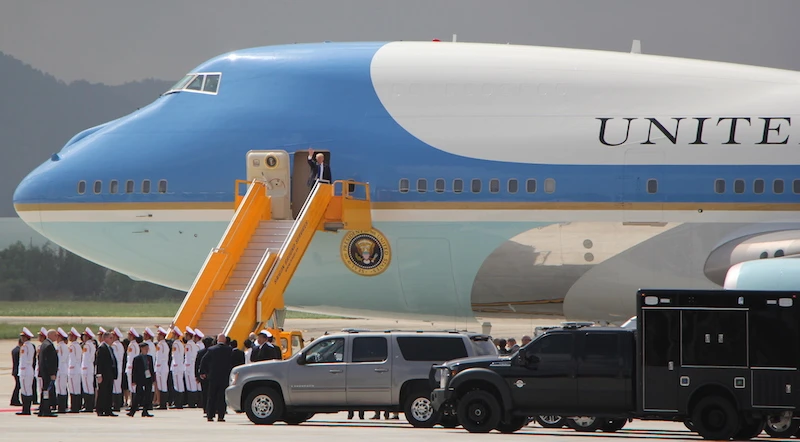 Đợt đến Việt Nam này, tháp tùng tổng thống Mỹ là đoàn tùy tùng lên tới hàng ngàn người. Đặc biệt, lực lượng mật vụ, an ninh Mỹ tạo những ấn tượng mạnh về độ chuyên nghiệp, cẩn trọng, tỉ mỉ. Ngoài ra, họ còn được trang bị cả chó nghiệp vụ, máy móc hiện đại.