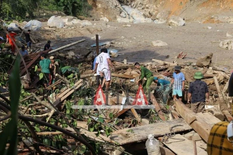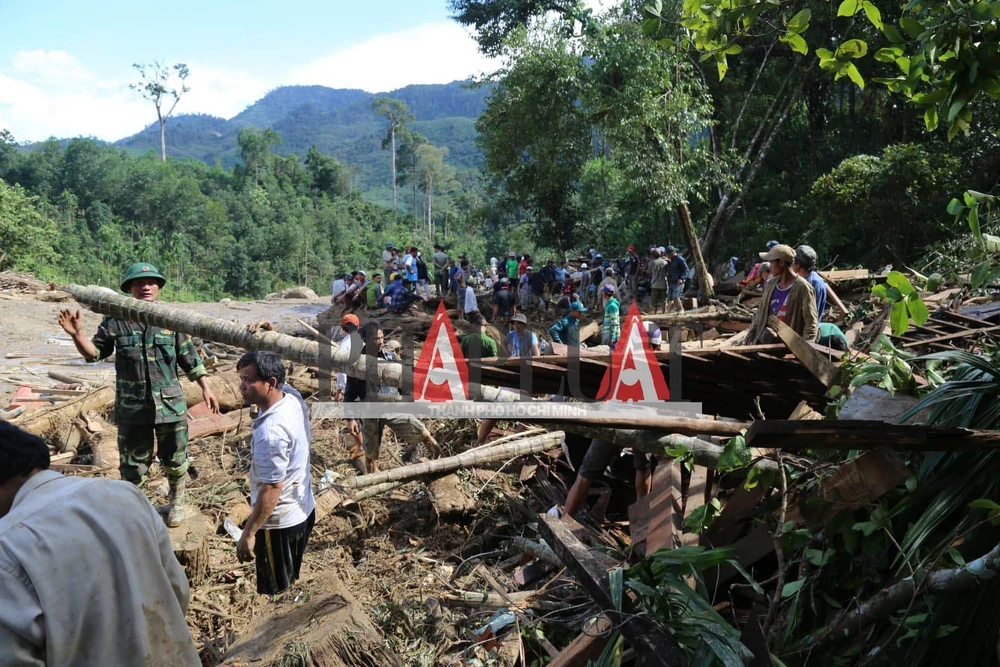 Phóng viên của chúng tôi đã tiếp cận được hiện trường vụ sạt lở thôn 1, xã Trà Leng, huyện Nam Trà My.