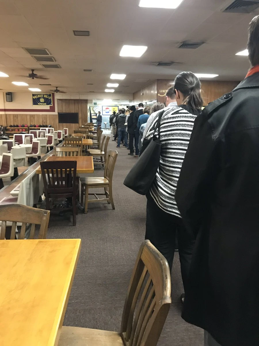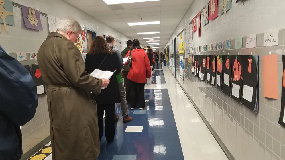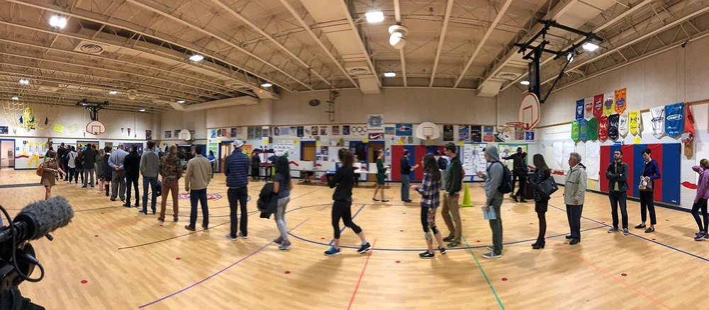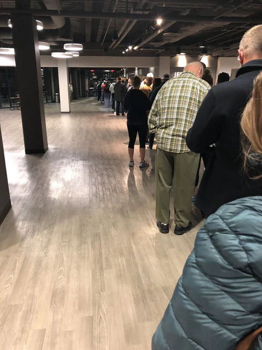 Hàng dài cử tri chờ tới lượt bỏ phiếu tại một điểm bầu cử ở Mỹ. Ảnh: Twitter