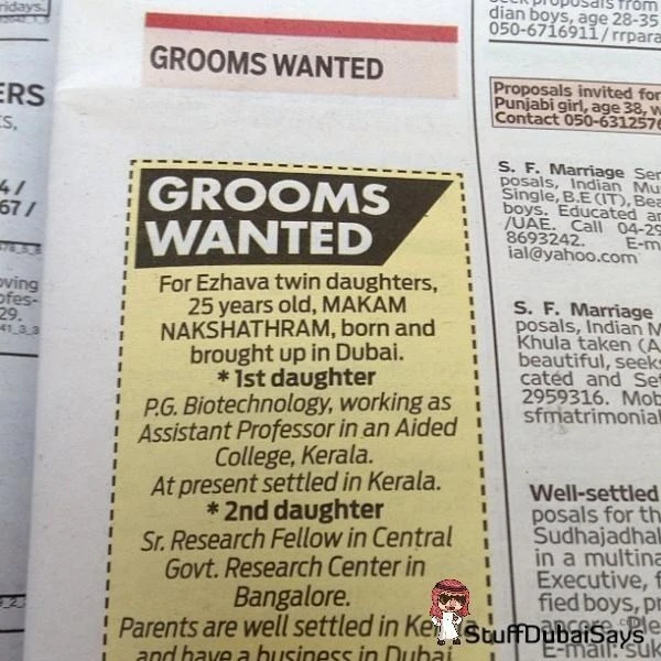 (Cần tìm chồng cho cặp song sinh nhà Ezhava, 25 tuổi, lớn lên và sinh sống tại Dubai.