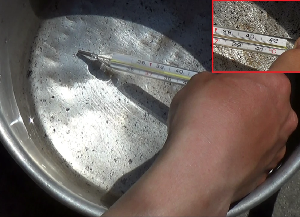 Nồi nước đặt ra ngoài trời khoảng 20 phút đã vượt 40 độ C...