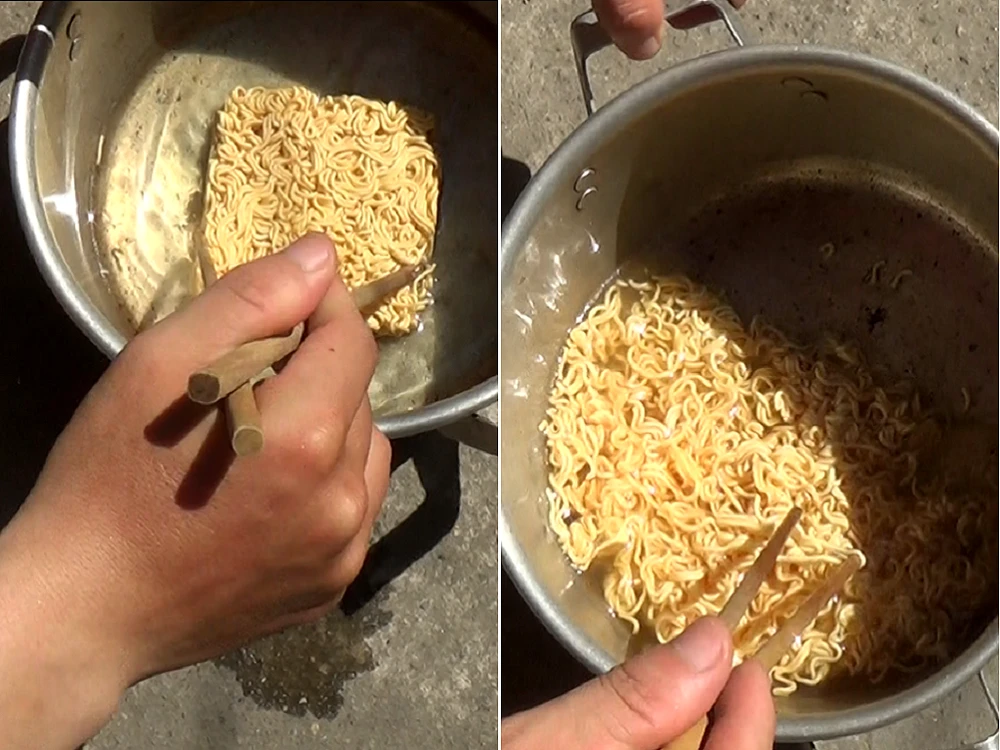 Thả mì tôm vào trong, chỉ thêm 10 phút nữa, bạn sẽ có món mì tôm úp ngoài trời (!)