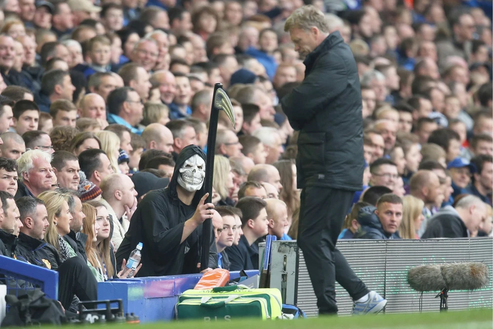 CĐV Everton trong vai thần chết "vẫy gọi" David Moyes