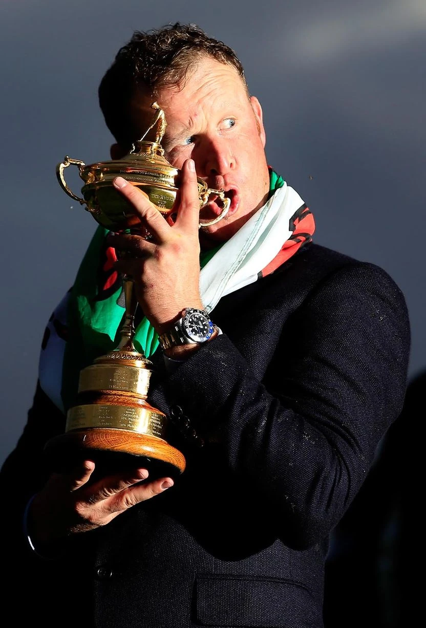 Jamie Donaldson bên chiếc cúp Ryder Cup mà đội Châu Âu giành được.