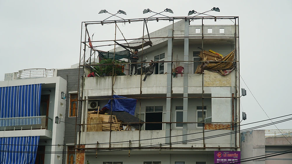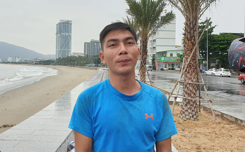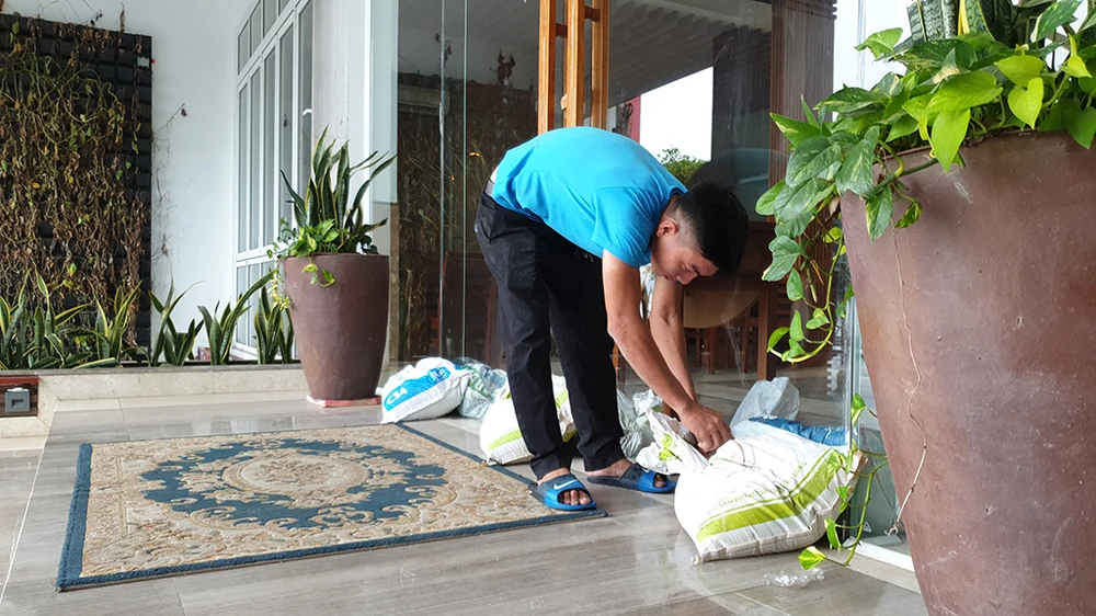 Anh Trần Văn Hòa, nhân viên một khách sạn trên đường Xuân Diệu cho biết các nhân viên của khách sạn được huy động dùng bao cát chằng chống nhà cửa, tháo dỡ các biển hiệu để phòng tránh tác hại của cơn bão sắp đổ bộ.