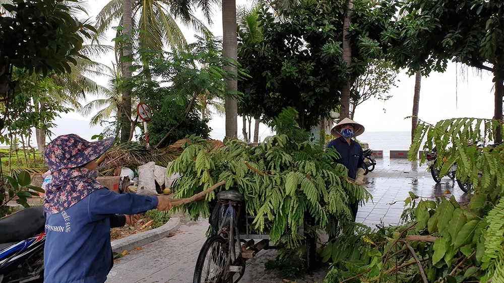 Theo một nhân viên công ty cây xanh, đến khoảng 13 giờ 30 chiều cùng ngày, 80% cây xanh trên địa bàn TP Quy Nhơn đã được cắt tỉa.