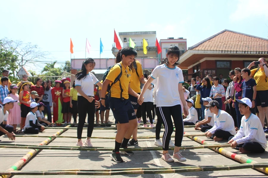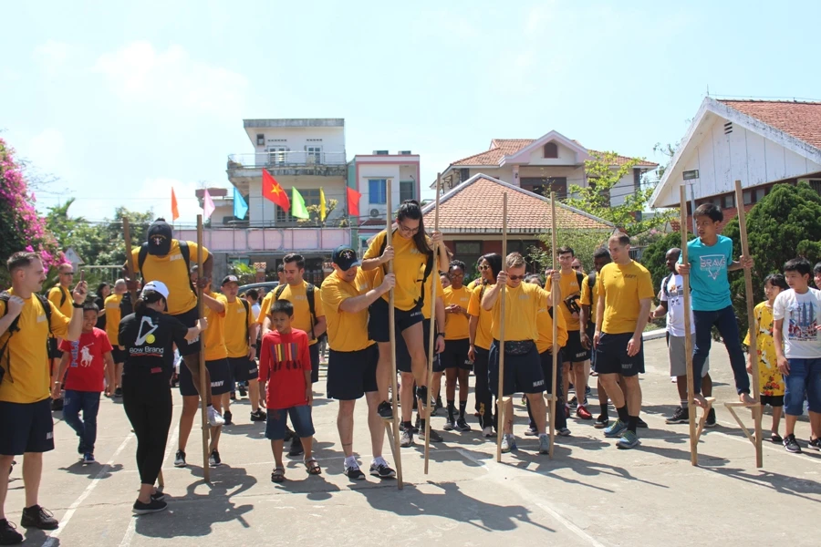Trong sáng nay, ngoài giao lưu văn nghệ, đoàn thủy thủ Hải quân Hoa Kỳ còn tham gia nhiều hoạt động cộng đồng khác như nhảy sạp, đi cà kheo, giao lưu đá bóng với các em nhỏ Làng trẻ em SOS…