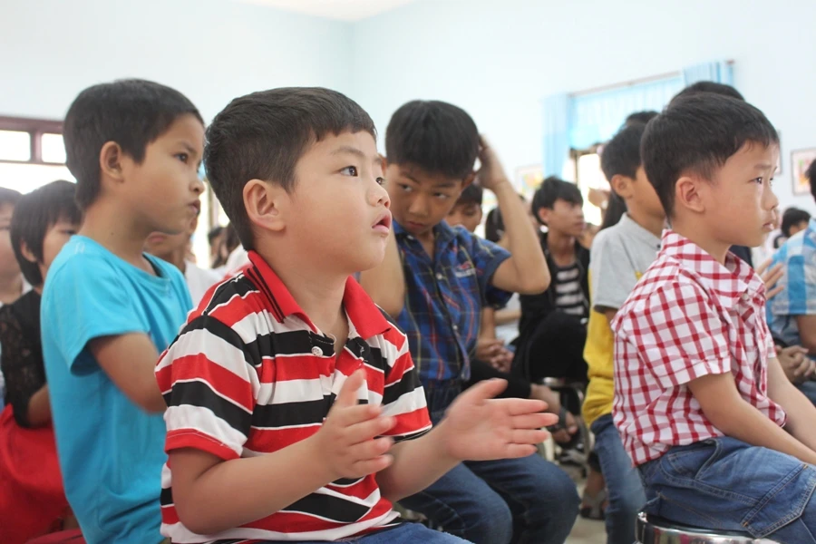 Các em nhỏ hào hứng theo dõi các tiết mục. Ảnh: TÂM AN