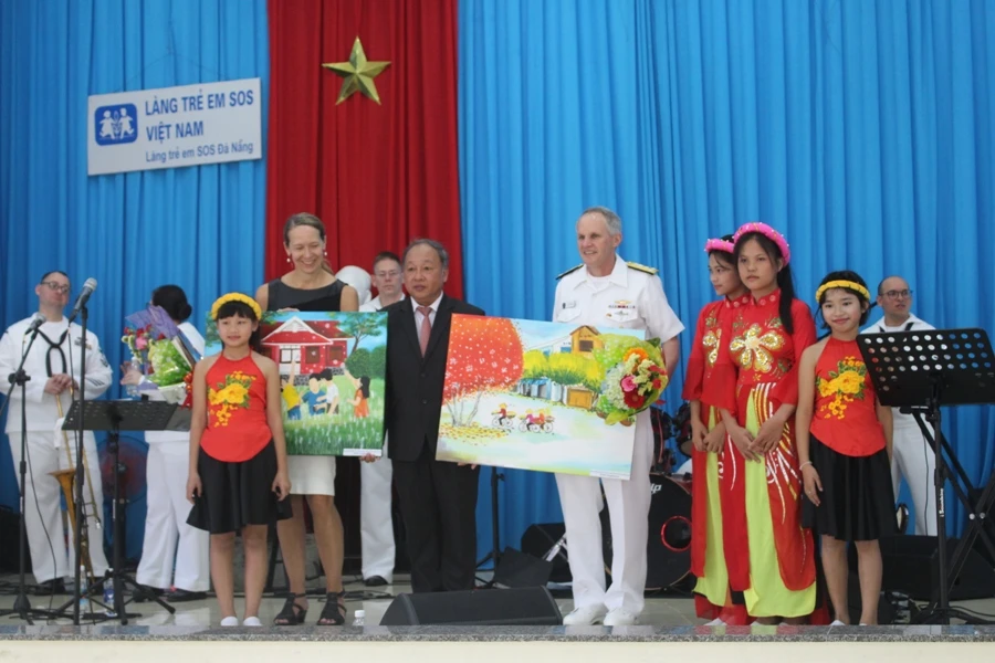 Dịp này, thay mặt Làng trẻ em SOS Đà Nẵng, ông Thái cũng đã gửi tặng đoàn Hải quân Hoa Kỳ hai bức tranh do các em nhỏ vẽ.