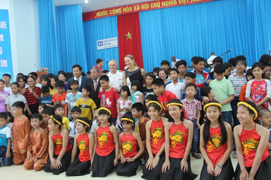 Phó Đô đốc Philip G. Sawyer (Tư lệnh Hạm đội 7, Hạm đội Thái Bình Dương Hoa Kỳ) chụp ảnh lưu niệm các em nhỏ tại làng trẻ SOS. Ảnh: Tâm An