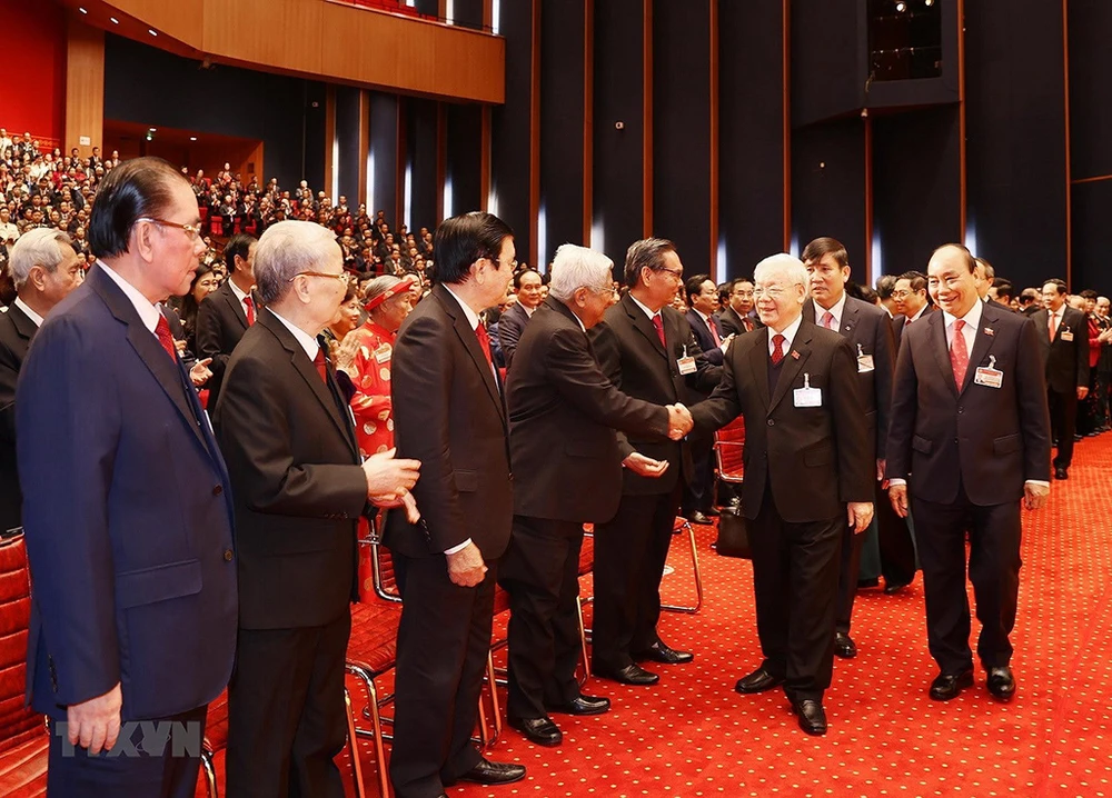 Tổng Bí thư, Chủ tịch nước Nguyễn Phú Trọng và Ủy viên Bộ Chính trị, Thủ tướng Chính phủ Nguyễn Xuân Phúc dự phiên khai mạc Đại hội. Ảnh: TTXVN