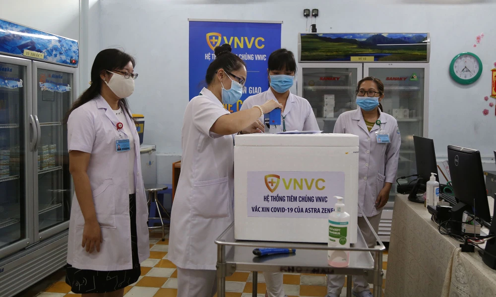Trong sáng 8-3, tỉnh Hải Dương, Bệnh viện Nhiệt đới Trung ương Cơ sở 2 và Bệnh viện Bệnh nhiệt đới TP.HCM là những đơn vị thực hiện tiêm những mũi vaccine ngừa COVID-19 đầu tiên cho nhân viên y tế và người dân.