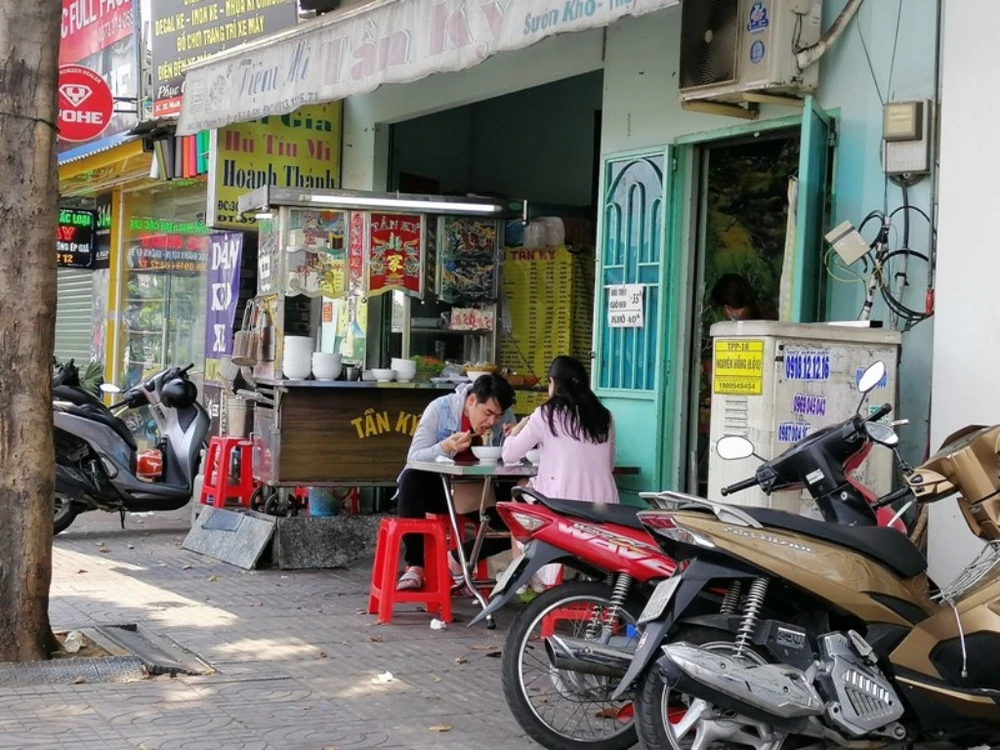 Tiệm mì Tần Ký (308 Phạm Văn Đồng, phường 1, quận Gò Vấp) vẫn bán thức ăn tại chỗ cho khách lúc 10 giờ ngày 1-4.