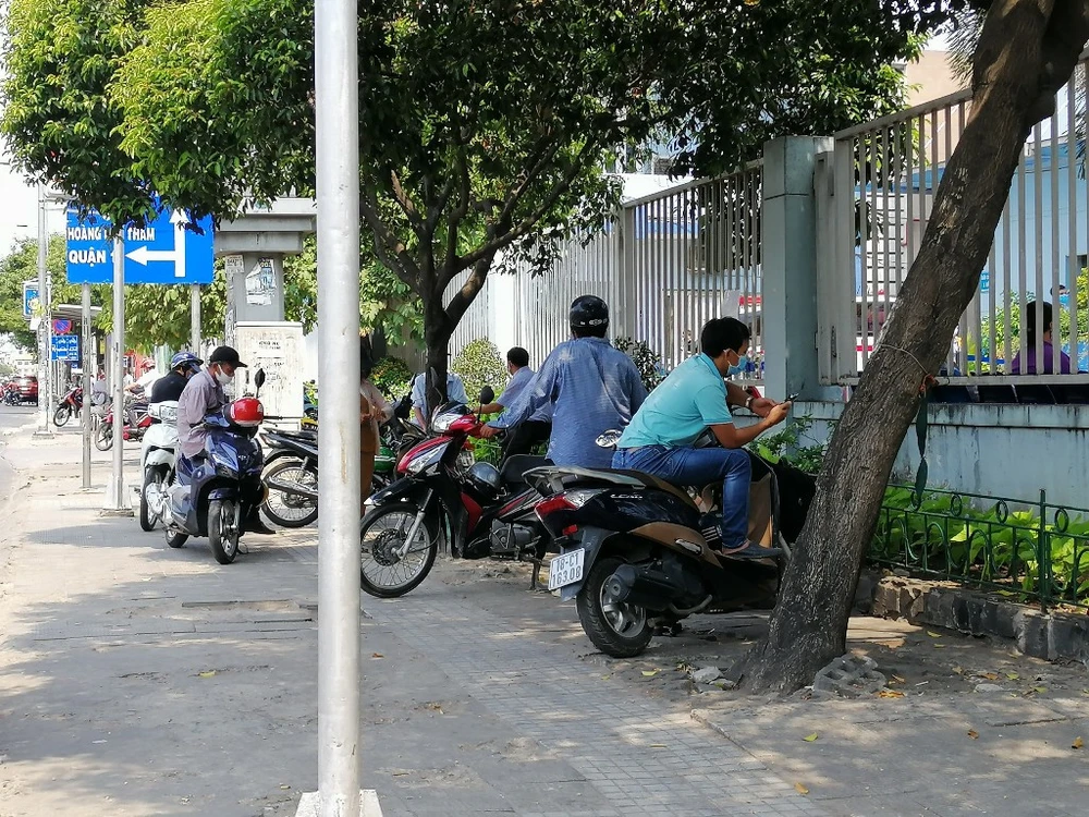 Người dân vẫn tập trung trước BV Thống Nhất (quận Tân Bình), thậm chí có người không đeo khẩu trang.