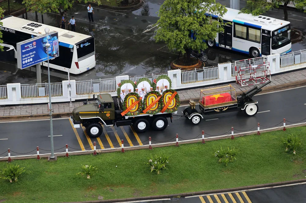 Linh xa đưa linh cữu Đại tướng Lê Đức Anh rời sân bay Tân Sơn Nhất.