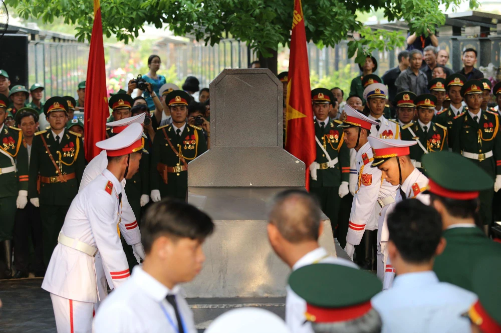 Phó Thủ tướng Trương Hòa Bình, Trưởng ban Tổ chức lễ tang, tuyên bố lễ an táng bắt đầu. Nghĩa trang TP.HCM là nơi an nghỉ cuối cùng của Đại tướng Lê Đức Anh.