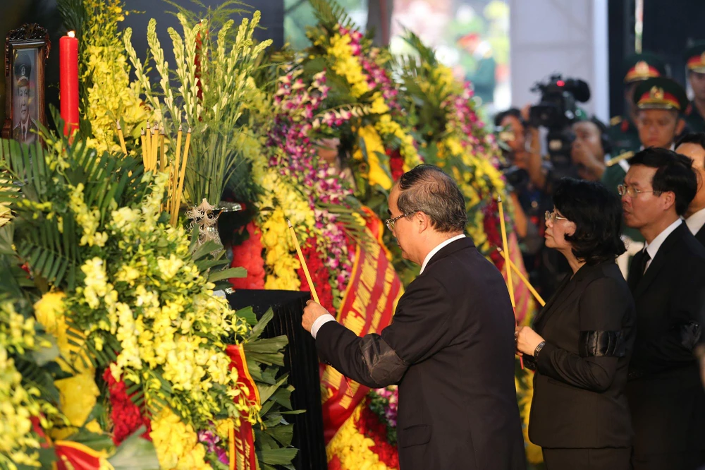 Lãnh đạo, nguyên lãnh đạo Đảng, Nhà nước và gia đình Đại tướng dành một phút mặc niệm để tiễn biệt ông.