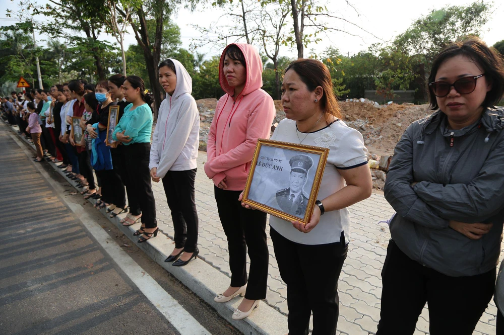 Từ sân bay Tân Sơn Nhất, linh cữu Đại tướng Lê Đức Anh được di chuyển qua Quân khu 7 rồi ghé nhà riêng của ông tại số 240 Pasteur, phường 6, Quận 3, TPHCM trước khi tới nghĩa trang TP.HCM. Trong ảnh: Người dân ôm di ảnh đứng dọc con đường đến nghĩa trang TP.HCM để tiễn biệt Đại tướng Lê Đức Anh.