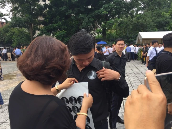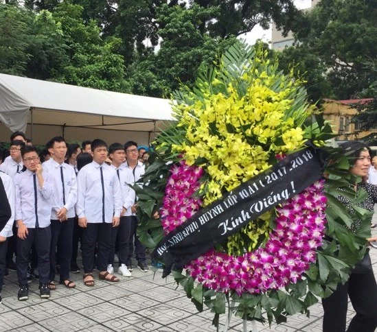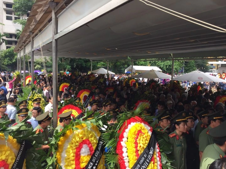 Khu vực các đoàn chờ vào viếng đông nghẹt người. Do số lượng đoàn viếng quá đông, Ban tổ chức lễ tang thông báo ưu tiên đoàn của học sinh-giáo viên Trường Lương Thế Vinh vào viếng trước.
