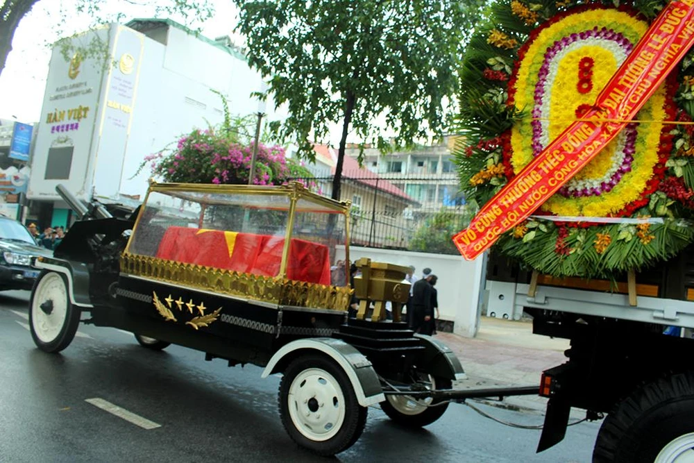 Linh cữu của Đại tướng Lê Đức Anh về tới nhà riêng tại 240 Pasteur, phường 6, quận 3. Ảnh: LÊ THOA