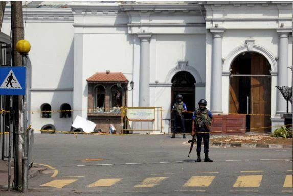 Nhà thờ Thánh Antony, một trong những nơi bị đánh bom, đang được cảnh sát phong tỏa nghiêm ngặt. Ảnh: REUTERS