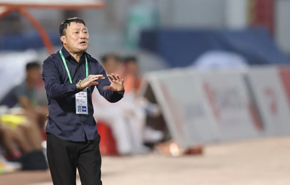 Ông thầy trẻ Trương Việt Hoàng hồi hộp nhắc nhở học trò đá chậm lại, chủ yếu kiểm soát bóng chờ thời gian trôi đi.