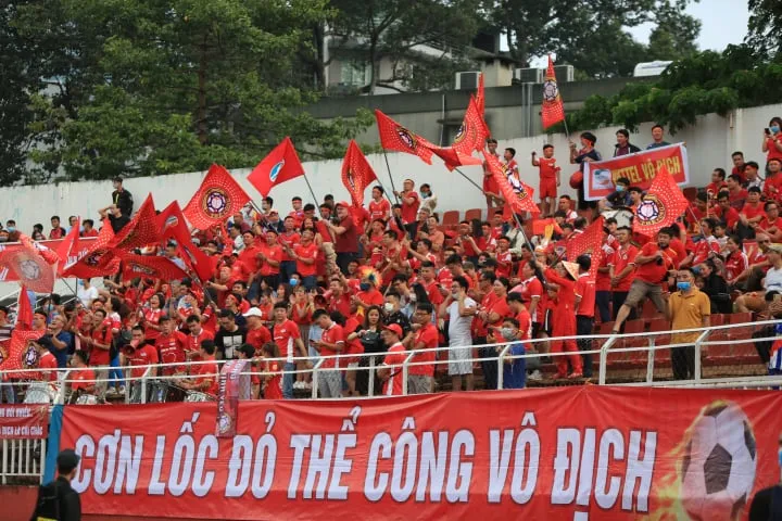 Trong khi đó, các cổ động viên Viettel với nỗi nhớ Thể Công xưa và đội bóng áo lính hiện tại ra sức cổ vũ cầu thủ Viettel phất cờ đang nằm trong tay mình.