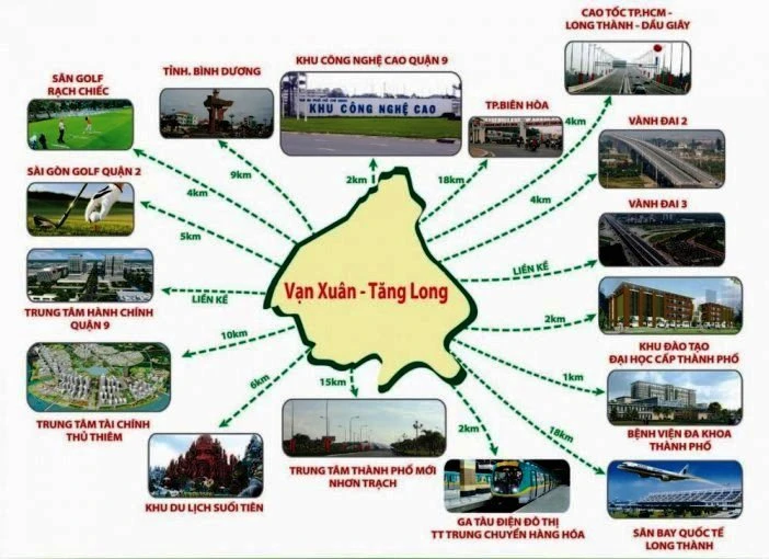 Khu dân cư Vạn Xuân – Tăng Long nằm trên đường số 8, cách đường Nguyễn Duy Trinh 500m và kế cận khu đô thị Đông Tăng Long, quận 9. Được quảng cáo là nằm cạnh khu hành chính mới quận 9, gần khu Công nghệ cao với tiêu biểu là nhà máy Samsung đã đầu tư 2 tỷ đô vào đây, ngân hàng hỗ trợ cho vay 50 – 60% giá trị lô đất trong 20 năm.