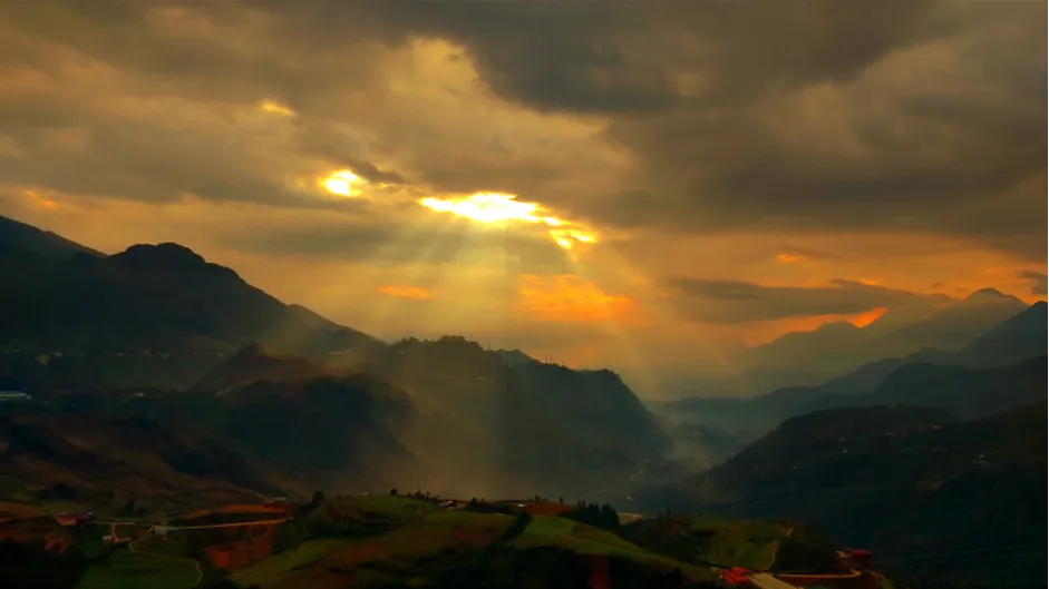 Hoàng hôn ở bản. Ảnh: Pinterest