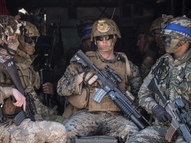 Các binh sĩ Mỹ và Hàn Quốc tham gia một cuộc tập trận quân sự chung thường niên ở Pohang, tỉnh Bắc Gyeongsang, Đông Nam Hàn Quốc vào ngày 12-3-2016. Ảnh: GETTY