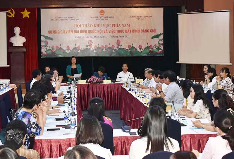 Ngày 15-4, Nhóm nữ đại biểu Quốc hội (ĐBQH) Việt Nam phối hợp với Ủy ban về các vấn đề xã hội của QH và Ban Công tác đại biểu của Ủy ban Thường vụ QH tổ chức hội thảo với chủ đề “Nữ ứng cử viên đại biểu Quốc hội và việc thúc đẩy bình đẳng giới”.