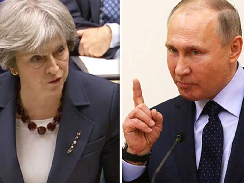 Thủ tướng Anh Theresa May (trái) và Tổng thống Nga Vladimir Putin. Ảnh: GETTY