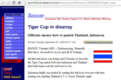 Sports Illustrated đăng tải thông tin về vụ bê bối ở Tiger Cup 1998
