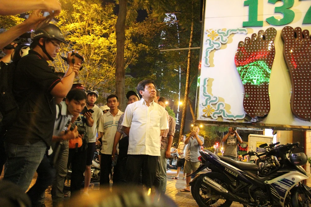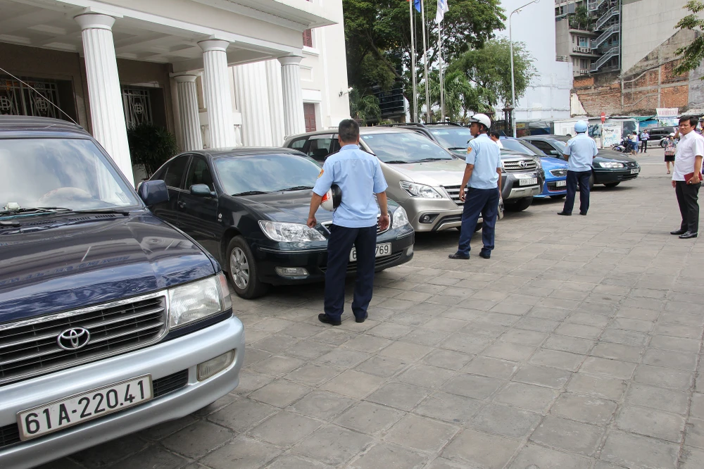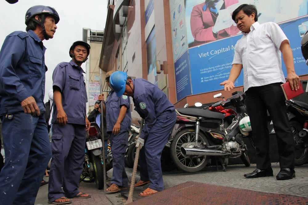 Ông Đoàn Ngọc Hải chỉ đạo lập biên bản và cho dừng hoạt động bãi xe cạnh UBND quận 1 do chủ đầu tư thu phí trái quy định.