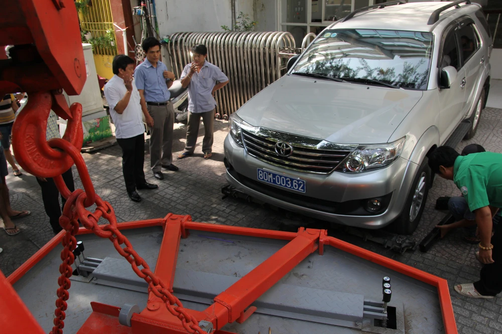 Ông Hải chỉ đạo niêm phong và cẩu gần chục ô tô đậu trên vỉa hè trước Sở Giao dịch chứng khoán TP.HCM.