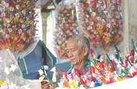 Những ngày gần tết Nguyên đán, đang làm hương trong một gian quán nhỏ, bà Tôn Nữ Ánh Tuyết (73 tuổi) ngơi tay tiếp các du khách dừng xe vào quán tham quan.