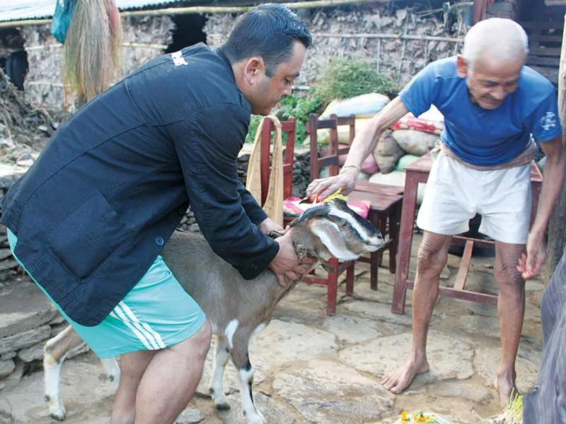Rồi thì ngày quan trọng nhất của lễ Dashain cũng đến. Hôm ấy, mọi người trong nhà dậy sớm hơn thường lệ. Tôi được đánh thức bởi những âm thanh yên bình của làng quê: tiếng quét sân xào xạc, tiếng xuỳ xuỳ lùa đàn dê ra chuồng, tiếng trẻ con cười nói rộn ràng. Khoảng 9 giờ, bạn tôi dẫn chú dê mập mạp vào sân. Ông của bạn vẽ một hình thù kỳ lạ trên đất để chú dê bước lên. Bạn tôi bảo đã chuẩn bị đến giờ hành lễ. Dù rất sợ nhưng vì tò mò tôi cố gắng đứng xem.
