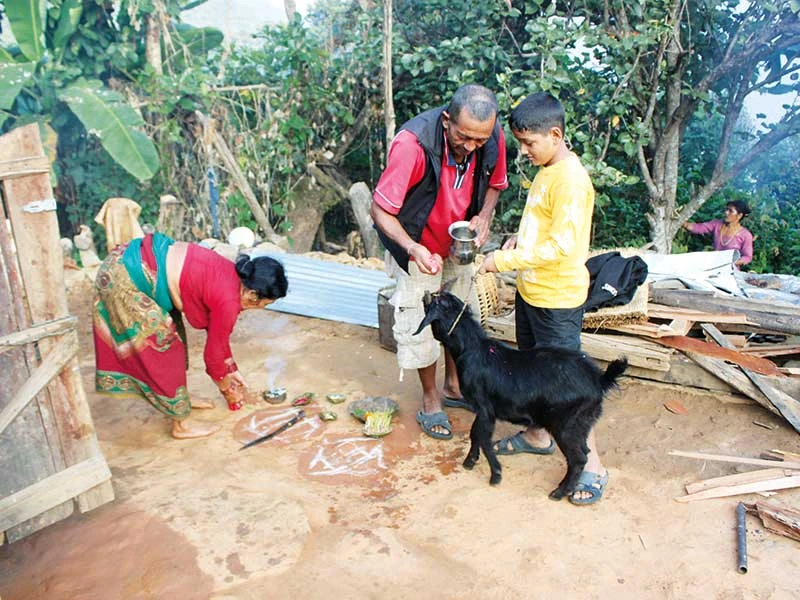 Ngôi làng của bạn chừng chục nóc nhà, nằm giữa một thung lũng nhỏ trên đỉnh núi. Nepal là một trong những đất nước nghèo nhất thế giới, còn nhà của bạn tôi hẳn là một trong những gia đình nghèo nhất Nepal. Gia tài của gia đình là con trâu để lấy sữa mỗi ngày thay cho bữa ăn sáng và một bầy dê bảy con. Chỉ con dê mập mạp nhất đàn, bạn tôi bảo đó là con sẽ được chém đầu sau hai ngày nữa. Ở làng, nhà nào cũng trồng một vườn bông vạn thọ và cũng cột sẵn chú dê để chuẩn bị hiến tế.