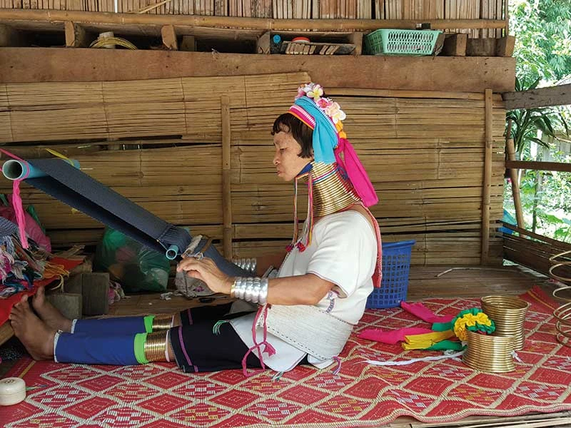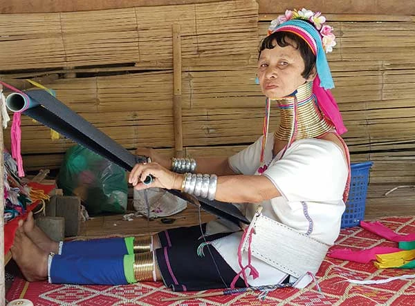 Đã từng trông thấy người cổ dài trước đó, vậy mà tâm can tôi chấn động ngay khi nhìn thấy một phụ nữ nhỏ thó đang ngồi dệt vải ở đầu làng. Người phụ nữ ấy không thể đoán nổi tuổi tác, thân hình nhỏ bé lạ thường bởi cái cổ dài lêu nghêu với những chiếc vòng cổ bằng đồng sáng bóng. Nghe nói sức nặng của những chiếc vòng cổ khiến bờ vai, lồng ngực của người mang bị biến dạng như thế. Kiểu tóc và cách ăn mặc truyền thống của người Karen, nét mặt, nụ cười của người Karen cổ dài trông rất khác lạ. Không trẻ không già, không vui không buồn.